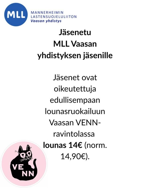 • VENN lounas aikuisjäsenen jäsenkortilla 14€