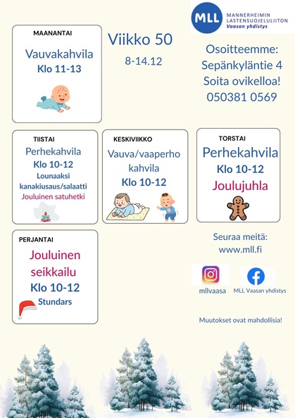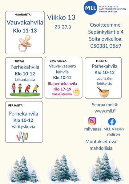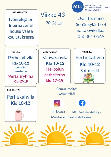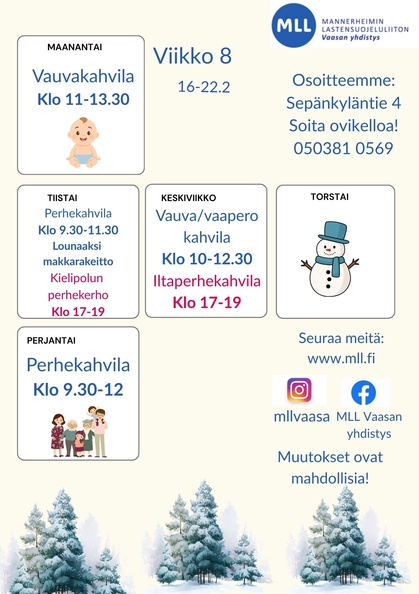 Yhdistyksen puhelinnumero on 050 - 381 0569 ja sähköposti vaasanyhdistys(at)mll.fi .